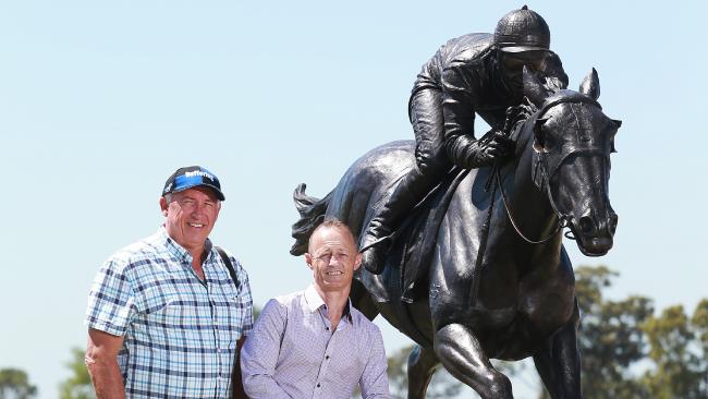 Buffering, the Queensland Horse of the Year (2012 to 2016) has been immortalised with a life-size statue standing in his honour at Eagle Farm.