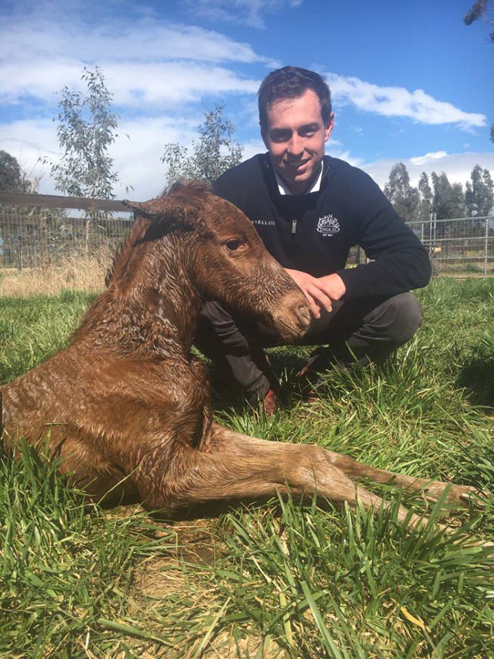 (Top photo: Unencumbered proving that there are great things coming for his progeny, James Price helping with foaling, Lovemelikearock x Unencumbered colt August 2017: Photo source: Three Bridges Facebook and Twitter)